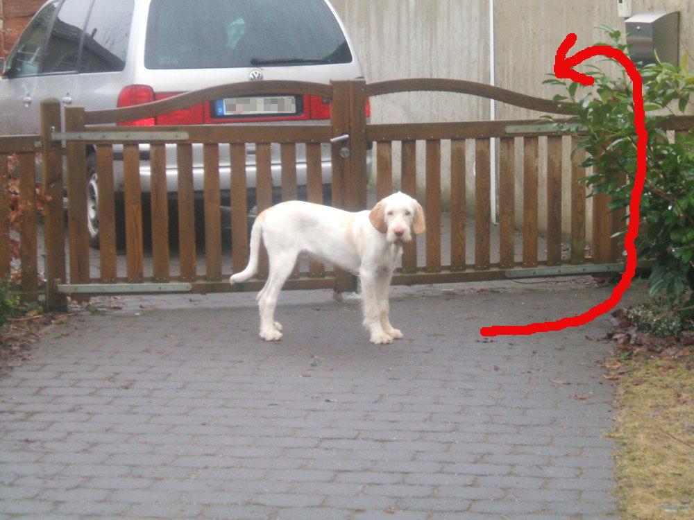 Das ist die inzwischen mehrfach bewährte Route, wenn sich Frauchen auf der anderen Seite des Zaunes befindet.
